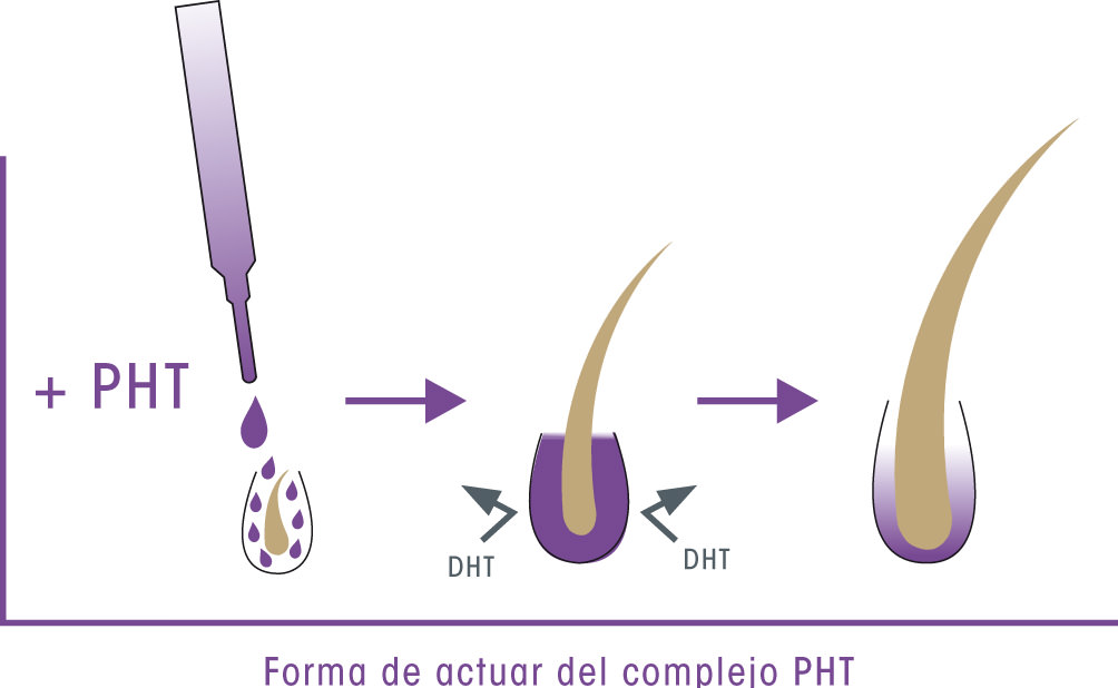 - Dichas hormonas vegetales inhiben la pérdida de cabello causada por la hormona DHT. Estos ingredientes activos estimulan la actividad de las raíces del cabello "dormidas", con el resultado de un crecimiento de cabello nuevo y saludable.
